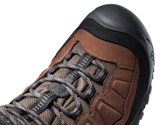 つま先にゆとりのあるトゥボックス構造: KEENのターギーファンから定評のある、つま先にゆとりを持たせた幅広のラスト(木型)を採用