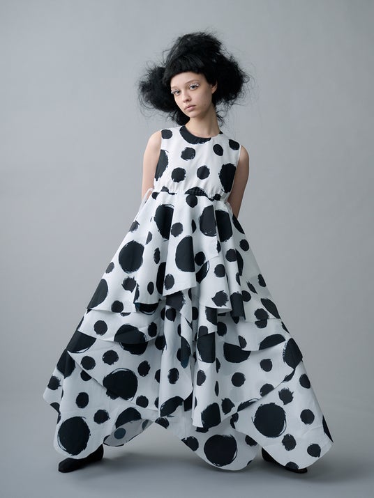 2024年の春夏コレクションでは、「Unclear(曖昧)」をテーマに、新しいドットファッションを提案。不確かなものが残す強烈な印象。輪郭がぼやけてしまい不確かで曖昧な存在となったドットと、輪郭がくっきりと見える確かな存在のドットを共存させるグラフィックで、より強い存在感を持つ、新しいドット柄が誕生しました。