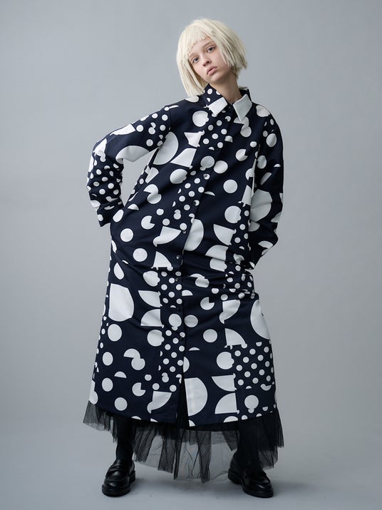 新作「Unclear(曖昧)」シリーズのdodot.オリジナルドット柄を入れたグラフィックロングシャツ。曖昧にぼやけたドットとくっきり輪郭のあるドットが共存し、存在感のある一着です。