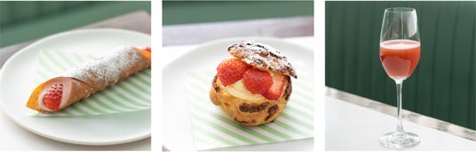 シチリアの伝統菓子カンノーロには、春限定ストロベリーフレーバーが登場。手作りのサクサク生地に甘酸っぱいストロベリーリコッタクリームをたっぷり詰め、両端にフレッシュなストロベリーをトッピング。コレド室町店と表参道店限定のメニューです。