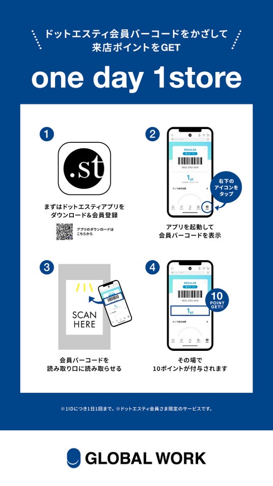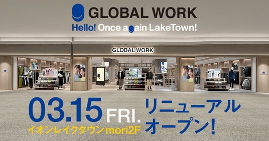 「Play fashion!」をミッションに掲げ、”グッドコミュニティ共創カンパニー”を目指す株式会社アダストリア(本部:東京都渋谷区渋谷2-21-1、代表取締役社長:木村 治)が展開するカジュアルブランド「GLOBAL WORK(グローバルワーク)」は、埼玉県越谷市の大型ショッピングモール「イオンレイクタウン」moriの店舗を2024年3月15日(金)にリニューアルオープンいたします。ホテルをイメージした新店舗デザインに導入される最新のミラーサイネージが、買い物シーンにより豊かで楽しい演出を加えます。リニューアルオープンを記念して、期間限定の4つのスペシャルなイベントでお客さまをお迎えします。