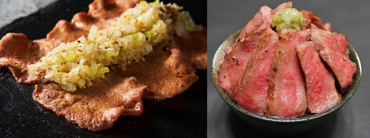 右:宮崎牛とろける大トロステーキ丼 <焼肉のひみつ基地(福岡県北九州市)>