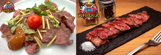 左:熟成佐賀牛の赤身ステーキ わさび添え <肉処 天穂(福岡県北九州市)>