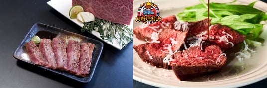 左:北海道サロマ和牛ロースステーキ <焼肉ふうふう亭(東京都新宿区)>