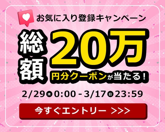 今なら「お気に入り登録」でwebクーポンがあたるキャンペーンを開催中です。エントリーをお忘れなく!