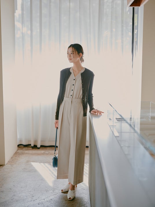 – カーディガンの小さめボタンを留めれば、プルオーバーとしても着用できる。