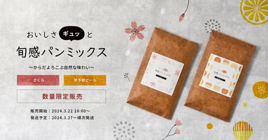 シロカ株式会社(東京都・千代田区)は、水と付属の材料&ドライイーストを入れるだけで、手軽にホームベーカリーで手作りパンが楽しめるパンミックスに旬の具材を別添した「おいしさギュッと 旬感パンミックス」の第2弾として、春におすすめの「さくら」「伊予柑ピール」の2種類を2024年3月22日よりシロカオンラインストア本店にて数量限定で発売します。