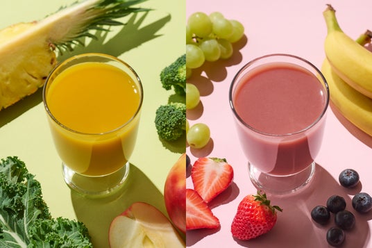 「1DAY ベジタブルスムージー」には350g相当の野菜を、「1DAY フルーツスムージー」には1日分200g相当のフルーツを使用し、それぞれ1日分の野菜・フルーツをとることができます。