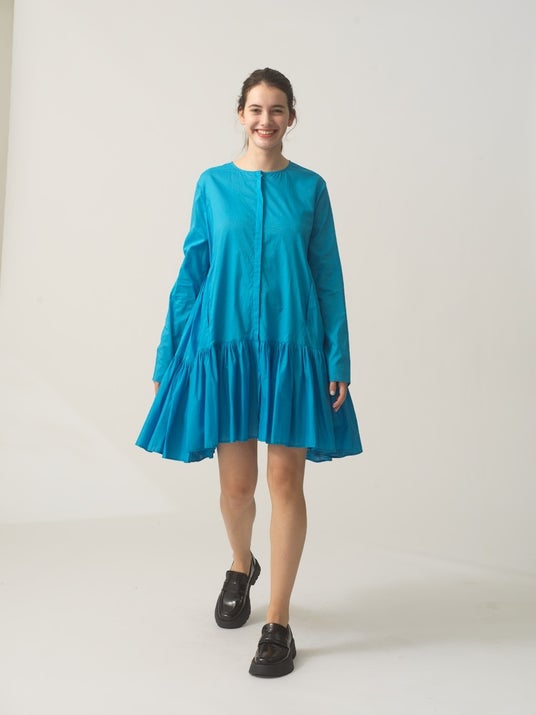 【MARTEL -Japan Limited Color-】¥58,300人気のシャツタイプドレスマーテルから日本限定カラーとしてターコイズブルーが登場しました。4月19日からの全国販売に先駆けて、4月10日よりジェイアール名古屋タカシマヤのポップアップストア先行で販売いたします。フロントのボタンをすべて開けると羽織りとしても着まわせる人気のドレスです。