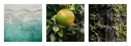 背後に広がる照葉樹林の山々、ふもとには果樹園、その先に広がる海。瑞々しい柑橘の樹々の間を通り抜ける早朝の海風と深く湿った葉や木や土の香りが交じり合う香り。