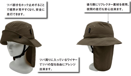 全ての自転車利用者に対して努力義務化されたヘルメット着用に対しては、見た目やデザインから、着用を拒む傾向が強いのではないのでしょうか。「ヘルメットハット」は、ファッション性の懸念点からヘルメットを被ることを拒んでいた人向けに、キャップ型とハット型の2種類を展開したヘルメットです。特にハット型には他のヘルメットにはない首の後ろの「日よけ」が付いてます。製品安全協会が定めた基準を満たした商品を示す「SGマーク」がついたヘルメットで、安全性を担保しながら、スタイリッシュに自転車ライフを楽しむことができるファッション性で、日々のライフスタイルに安心を合わせてみてはいかがでしょうか。