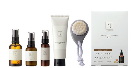 「N organic」ベーシックシリーズのスキンケアがライン使いできるセットです。2017年8月のブランド誕生から愛され続けている、基幹商品のローション、セラムはハーフボトルで約1ヶ月しっかりお使いいただけます。さらに、クレンジングミニ・洗顔フォーム本品・洗顔ブラシがはいっているため、「N organic」のライン使い体験にぴったり。2022年4月に発売開始して以来根強いファンが多いスペシャルケア用フェイスマスクも4枚ついてくるので、大事な予定の前のケアにもおすすめです。