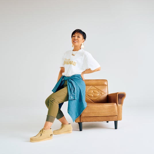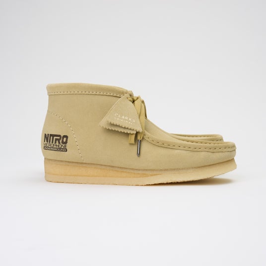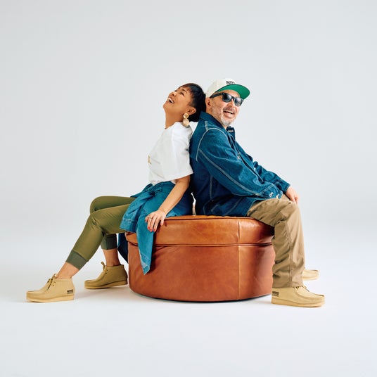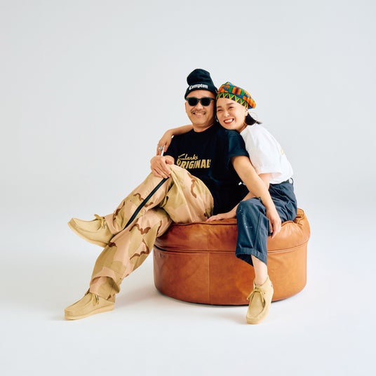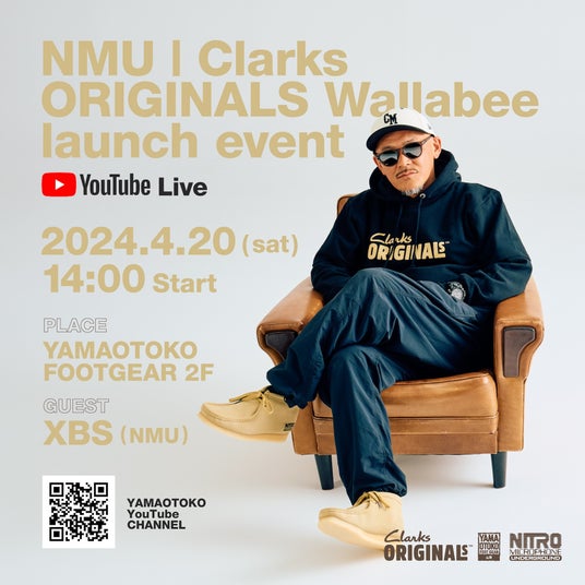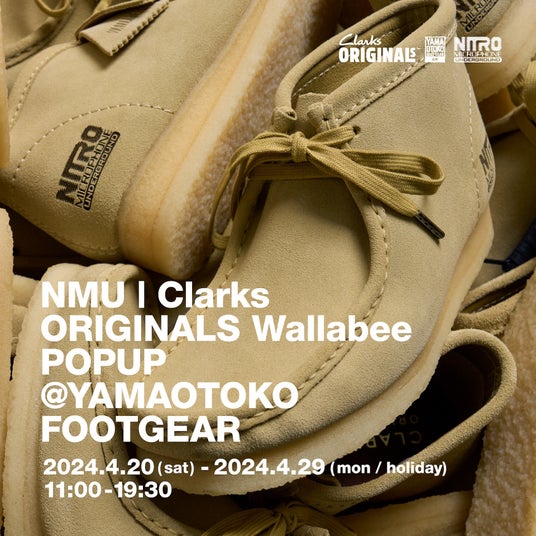 1968年に誕生し、日本では1971年から販売されている〈Clarks ORIGINALS〉のアイコニックモデル〈Wallabee〉は、日本でもヒップホップカルチャーと結びつきながら、幾度かのブームを巻き起こしてきた。モカシンシューズの代名詞として世界中で愛用されている永久不変の名品〈Wallabee Boot〉の王道カラーである“メープルスエード”のヒール部に、NMUのロゴをレーザー加工で刻印されたスペシャルエディションとなっており、グローバルで開催するワラビーデー(4/26)を記念したキャンペーン一環としてこのカスタムプロジェクトもキャンペーンを盛り上げている。