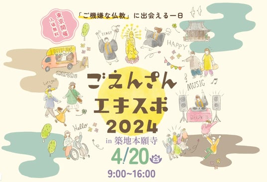 東京・浄土真宗本願寺派 築地本願寺にて、2024年4月20日(土)9時~16時【ご機嫌な仏教に出会える一日 ごえんさんエキスポ】を開催。境内での様々なブース・マルシェを楽しみながら、お坊さんや仏教との素晴らしい出会いを体験し、「ご機嫌な1日」をお寺で過ごします。