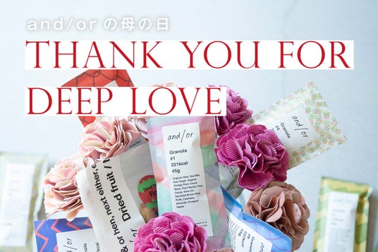 新しい食習慣をデザインするグラノーラ専門店「and/or Granola(アンドオアグラノーラ)」を運営する株式会社アンドオア(本社:東京都台東区、代表取締役:森谷由華)は、2024母の日限定ギフトセットを販売します。今年はテキスタイルフラワーブランド「Loveco(ロヴェコ)」とのコラボレーションを行い、残布から生まれた持続可能なカーネーションとのセットもご用意しております。そして、5月中旬より、お客様がご自宅用としてよりお求めやすい価格で楽しんでいただけるようグラノーラの量り売り販売を開始。特別なギフトとしてもご自宅用としても、これまでにないand/orのグラノーラで日常を豊かに彩ります。