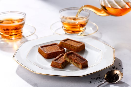 「バターと紅茶のフィナンシェ」(4個入 税込 1,188円)「バターと紅茶のフィナンシェ」(4個入 1,188円)は、バターとベルガモットの華やかな香りが漂うフィナンシェ。表面はカリッと焼き上げ、中はメープルシロップを染み込ませしっとりと仕上げました。