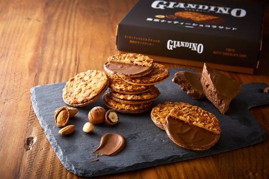 「東京ナッティーショコラサンド」(5個入 税込 972円)「東京ナッティーショコラサンド」(5個入 972円)は、ヘーゼルナッツとアーモンドをふんだんに使用しパリッとした食感のチュイールクッキーと、生地にアーモンドパウダーを混ぜ込んだ“ザクザク”食感の薄焼きクッキーで、ミルククーベルチュールチョコレートをサンドしました。