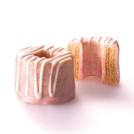「ショコラバウム ストロベリー」(4個入 税込 800円)「ショコラバウム ストロベリー」(4個入 800円)は、一層一層丁寧に焼き上げたバウムクーヘンに風味豊かなストロベリーチョコレートをたっぷりとコーティング。ありそうでなかった美味しさに仕上げました。