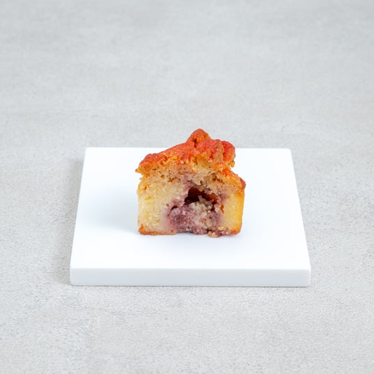 フレッシュ感を出すために、果肉感を残した苺ジャムをフィナンシェ生地に閉じ込めました。