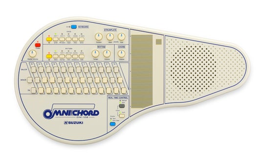オートハープという楽器の電子化を目指し1981年に弊社が開発。パネル上に並んだ「C」や「Am」といった任意のコードボタンを押しながら、ストラムプレートに指をスライドしたりタップしたりして演奏します。手にしたその日にコードを演奏できる、やさしい伴奏楽器として特に欧米で人気に。最後のモデルOM-300(1996年発売)の販売終了後も再販をのぞむ声を多くいただき、この度新モデルOM-108を2024年6月6日に発売します。