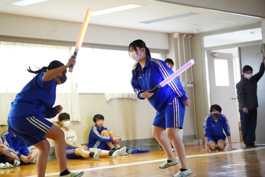 次世代のデジタルチャンバラのようなスポーツで、センサー内蔵のLED刀は、Bluetoothで専用アプリと連動し、どちらが先に当てたのかを正確に機械判定します。スマートフォン一台あれば、正確な判定が可能です。