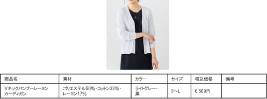 バンブーレーヨン素材のやわらかさや上品なドレープ性はそのままに、夏に最適なシャリ感を持たせたサマーニット素材のカーディガンを新展開。接触冷感性があり、夏の羽織として最適な一着です。