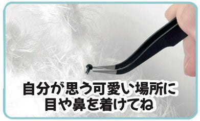 接着剤を使用すると外れにくくなります。自由に目や鼻をつけてね目・鼻のパーツがセットに含まれています。好きな位置にパーツをつけて可愛いマスコットを作ろう!
