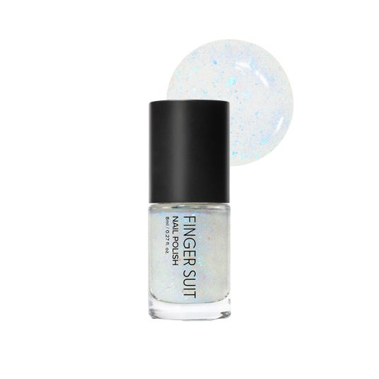 フェアリーフレイク雪の上に照りつける日差しに似た夢幻的なカラー。 透明なミルク色ベースに真珠のように仄かに輝くフレークグリッターとまばゆいブルーグリッターをミックスし、妖精の魔法のようにきらめくムードを醸し出します。