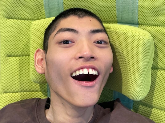 生後8ヶ月で低酸素性虚血性脳症になり、知的・身体共に重度の障がいが残る。動かしやすい左手でスイッチを押して家電やおもちゃ動かしたり、ipadを楽しむ。また走る車や電車を見るのも大好き!