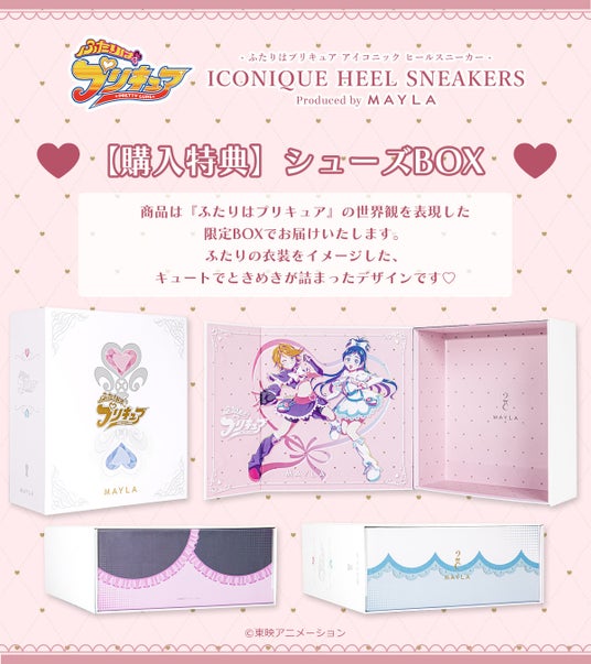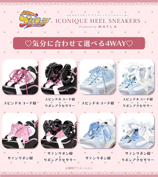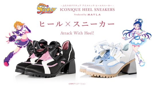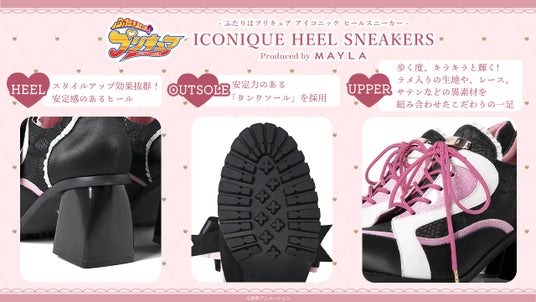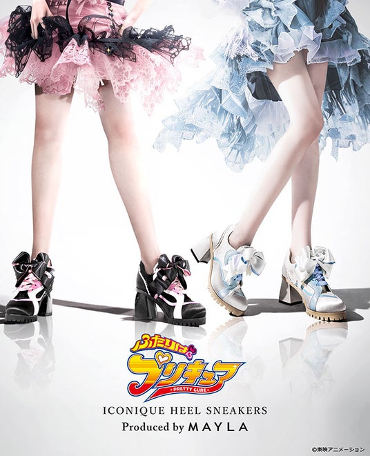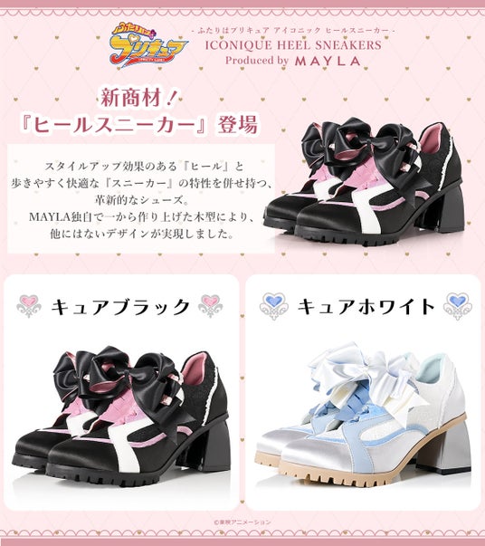 この度、『ふたりはプリキュア』のキュアブラックとキュアホワイトをイメージし、デザインの随所にMAYLAの想いと解釈を込めたヒールスニーカーが登場!