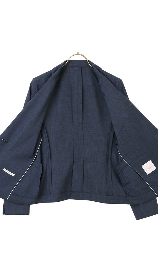 裏地をできる限り無くした仕様にしたため、カーディガンのように軽くて涼しいスーツができました。もちろん、スーツ工場でしっかりと縫製を行っているため、程よいかっちり感も備えています。