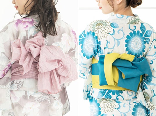 今年の浴衣は、バリエーション豊かになって登場。浴衣との配色を楽しめる帯のセットもご用意しました。