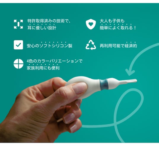シリコン製の先端を耳の中でふくらませて引き出す新感覚の耳かき。Makuakeにて【3月27日~5月31日】まで割引価格で応援購入可能! ※その後はMakuakeストアにて一般価格にて販売予定。