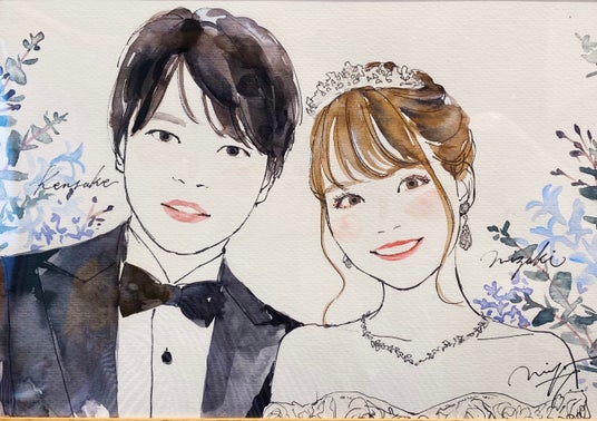 イラストレーター土屋みよ(Miyo Tsuchiya)が、おふたりの似顔絵をその場で描きます。ウェルカムスペースに、新居のインテリアにもおすすめ。