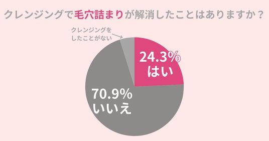 結果、クレンジングによる毛穴詰まりの改善を実感している方は24.3%であることがわかりました。