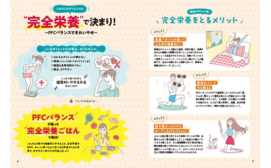 このPFCバランスが整った食事を“完全栄養ごはん”と命名して、ダイエット向けにアレンジしました。すべてのレシピを、食のプロフェッショナルである管理栄養士が考案しているので、信頼度もバッチリです。