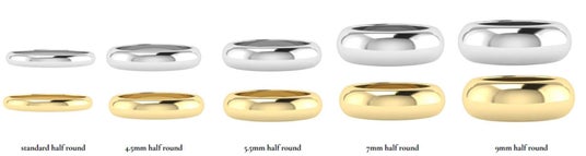 Half round ringを5つの太さで表現した結婚指輪(マリッジリング)のコレクション。