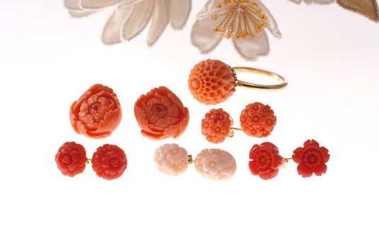 今回は、高知県の女性珊瑚職人とコラボレーションして制作した高知県産珊瑚ピアス、ブランド設立25周年を記念して制作した日本の技術を用いたラグジュアリージュエリーライン「GRACE」のアイテム、Matsuyoiの原点である西陣織のかんざしやコサージュなどの和小物をご紹介します。