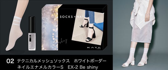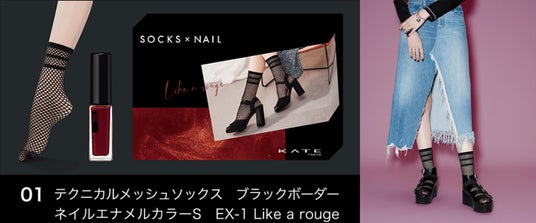 今回、そうしたKATEならではの視点を活かした抜け感シェードデザインで、足先を自然に細く長く魅せるテクニカルメッシュソックスと、ソックスに映えるネイルカラーがセットになった「ケイト SOCKS×NAILコレクション」を発売いたします。メイクの枠を超えたトータルビューティーを提案する「KATE EXTENSION SERIES」。今後の展開にもぜひご期待ください。
