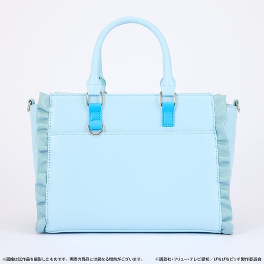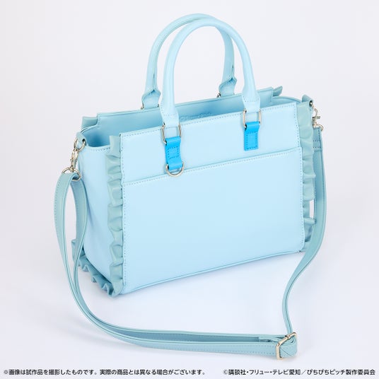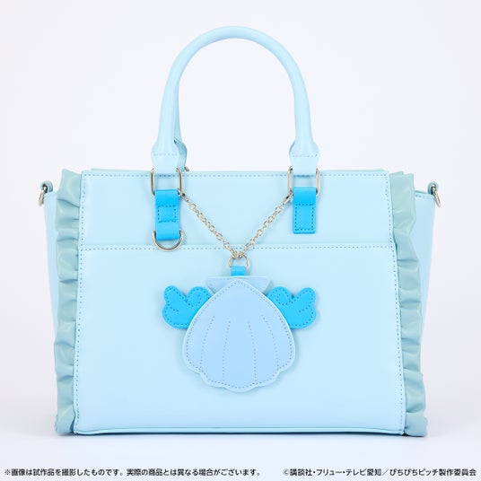 波音をイメージしたハンドバッグはブルーを基調とし、サイドにはフリルを取り付けて衣装を連想するようなデザインに落とし込みました。