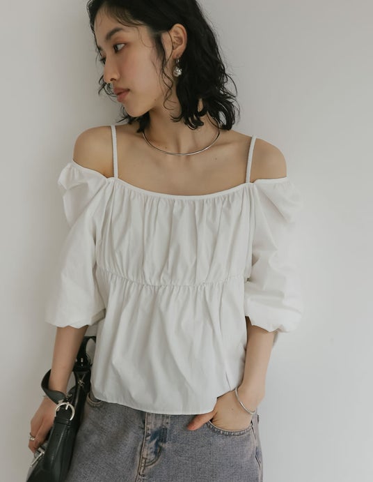 スクエアネック、オフショルとトレンド感のある着こなしを2WAYで楽しめるブラウスが登場。