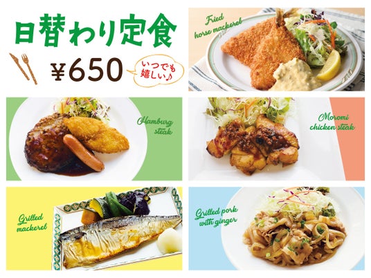 お財布に優しい!いつでも嬉しい税込650円の『日替わり定食』は、安くてボリューム満点!日替わりで毎日飽きることなくお楽しみいただけます!