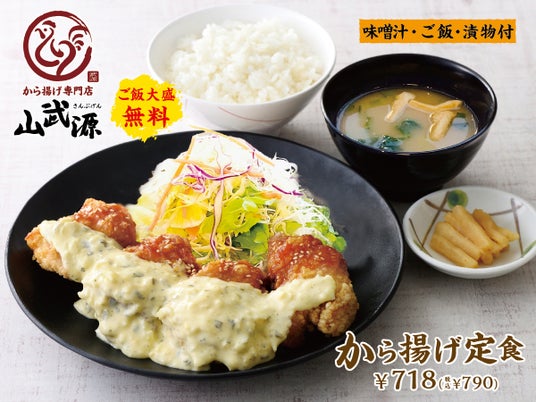 から揚げ専門店『山武源(さんぶげん)』からご提供する『から揚げ定食』は、特製漬けダレに漬け込んで丁寧に衣漬けしたサクッとジューシーな自慢の『から揚げ』を思う存分満喫していただけます。