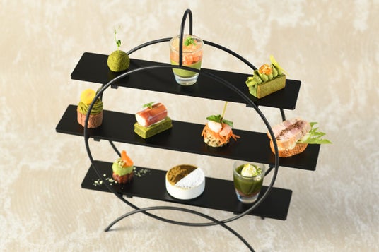 好評の日本茶づくしのアフタヌーンティーのスイーツを味わえる