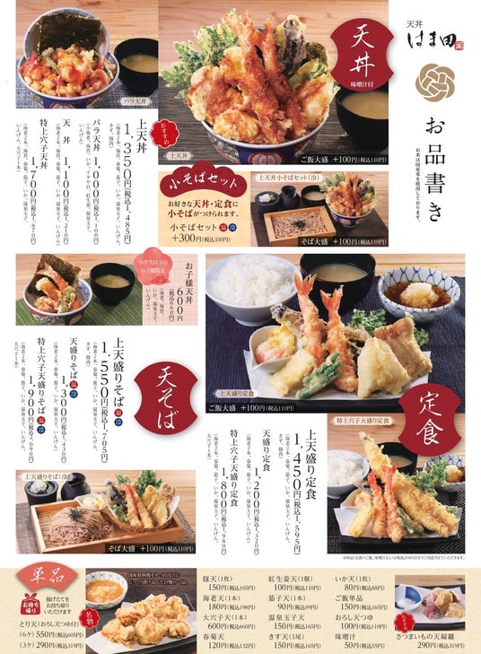 より豪華に、その日の気分に合わせて選びやすくをコンセプトに刷新したグランドメニュー。有名な老舗までいかなくても、一緒に遠出できなかった家族や友人と一緒に、自分へのご褒美や大切な人との記念日に自宅の近隣でゆったりと食事ができる店を目指す「天丼はま田」と認識していただくために実施しました。