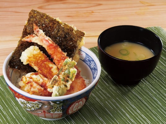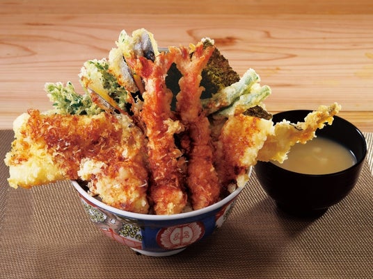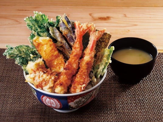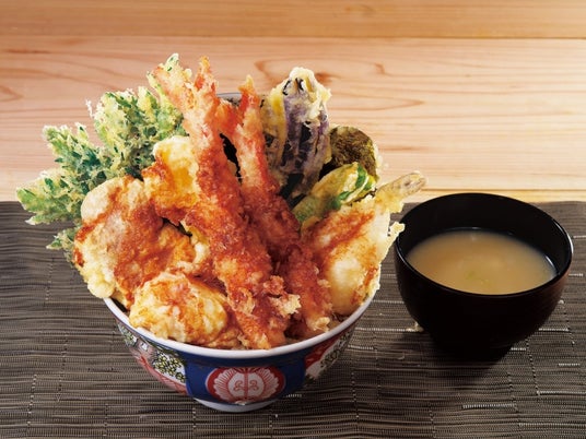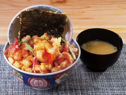 シンプルな天丼は、海老や野菜など7種類の具材を盛り付けました。食欲がある時には、さらに豚肉やきすを追加したボリューム感を堪能する「上天丼」を。贅沢な食事の時間をお過ごしいただける「特上穴子天丼」は、天丼に大穴子を1本のせた豪華さに思わず笑顔になる一杯です。