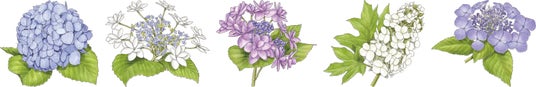 南沢あじさい山に咲く多様な種類のアジサイをイラストで表現
