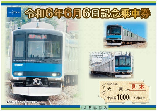 東武鉄道(本社:東京都墨田区)では、令和6年6月6日(木)より、「令和6年6月6日記念乗車券」を東武アーバンパークラインの6駅にて発売いたします。
