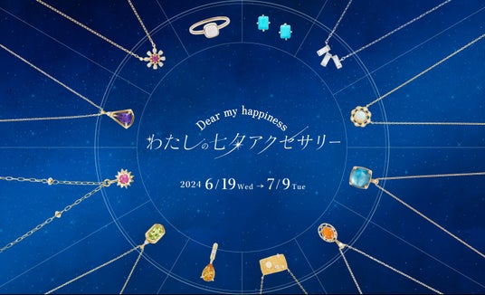 本プロモーションでは、七夕の星空に願いを込めた12星座の「星座石」や、星や月などをモチーフにしたアクセサリーを身に着けて気分がアガル「わたしの七夕アクセサリー」として、12ブランドから新作も含め120種以上のアクセサリーをラインアップします。