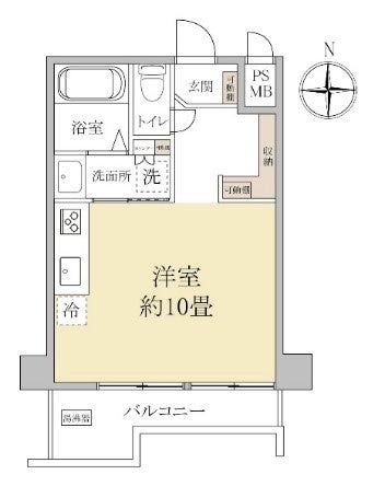 南向きのバルコニー付きワンルーム。オールインワン洗水栓や浴室暖房乾燥機など充実の設備